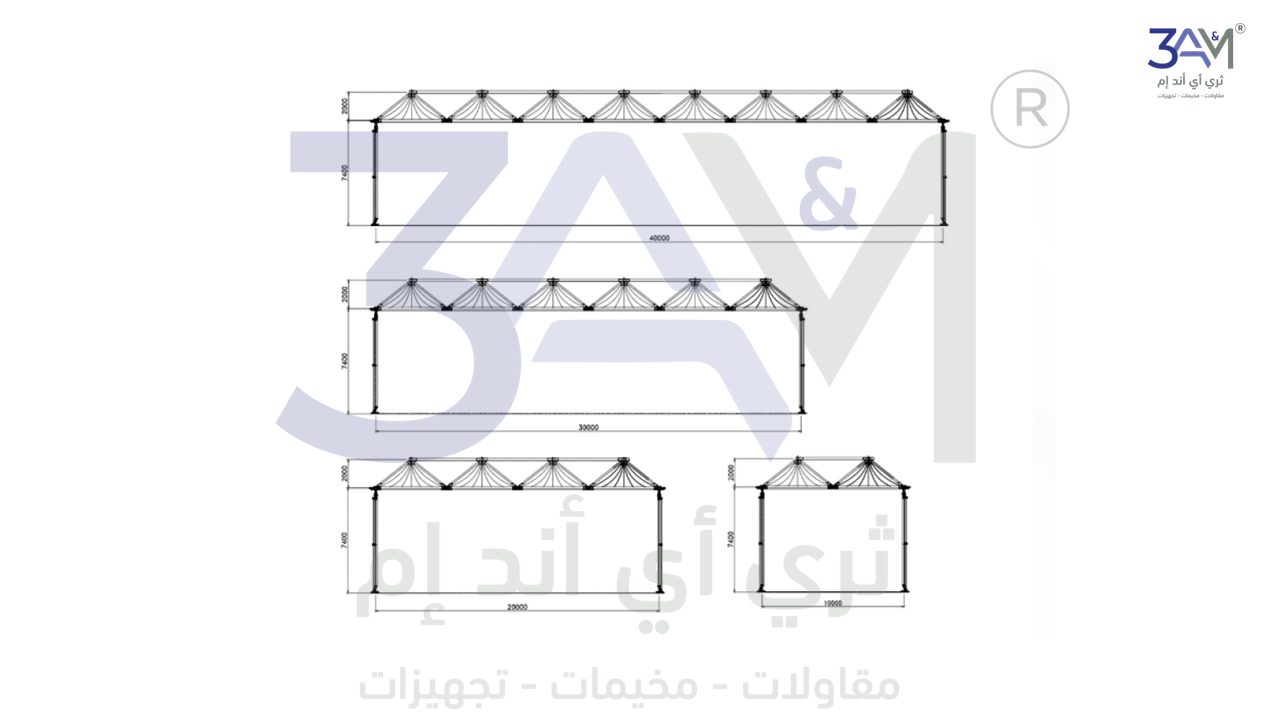 - العرض : 40m * 40m ، مدى حر بدون أعمدة داخلية مع طول غير محدود.